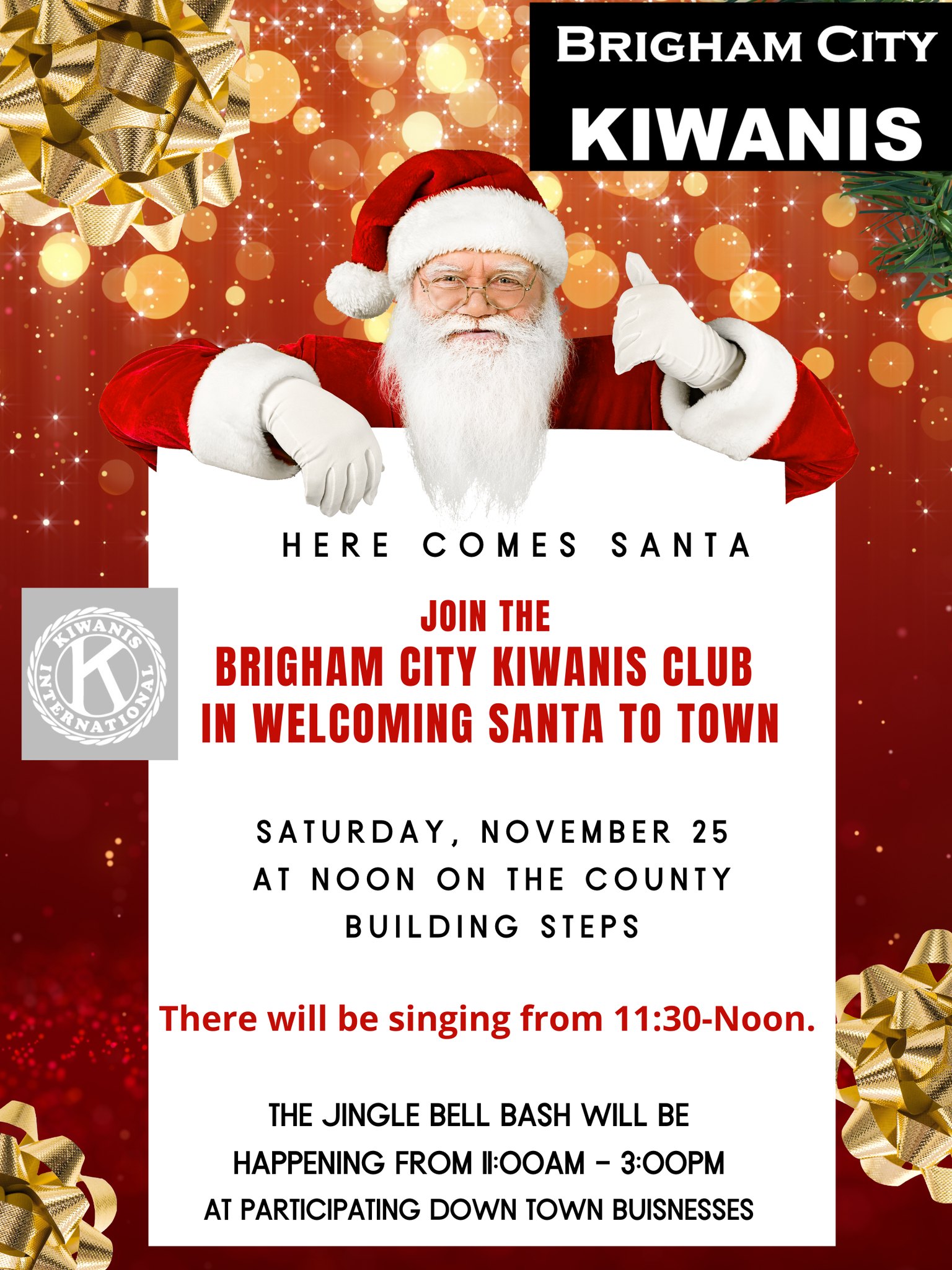 Exciting News from Brigham City Kiwanis Club! Santa Claus is Coming to Town! Join us for a festive celebration filled with joy and holiday cheer.