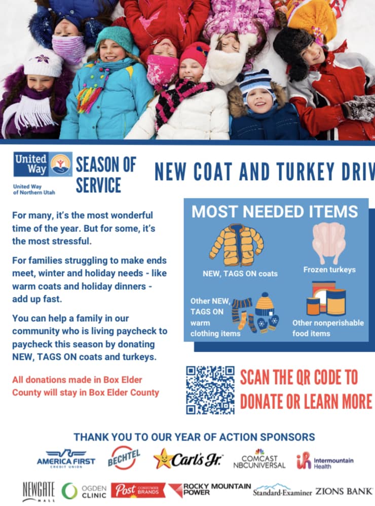 We have gathered 50 coats for children in need in partnership with United Way of Northern Utah.