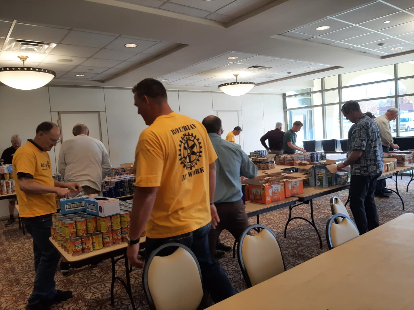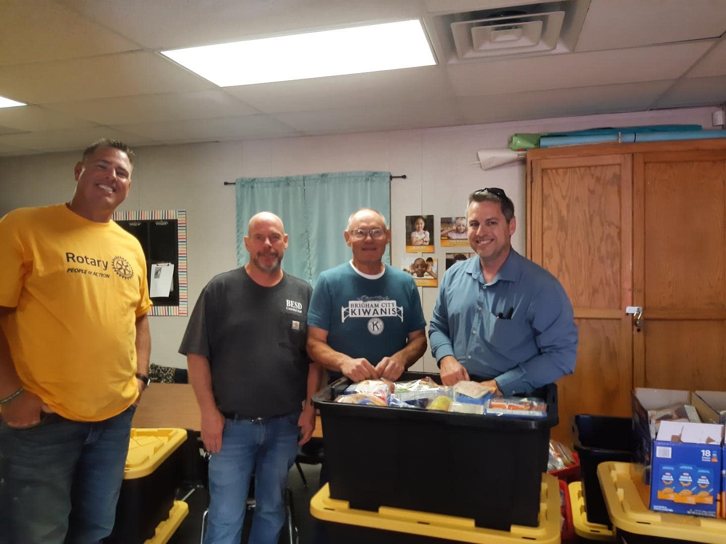 he Kiwanis Club of Brigham City and the Brigham City Rotary Clubs had a great time doing a combined service project making 400 food kits for the schools to send home in the child’s backpack to help curve the problem.